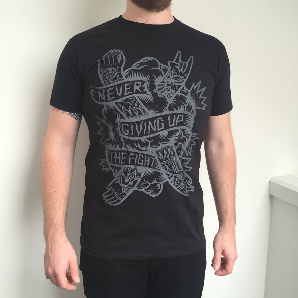 Due to a mix up at the printers we have 2 Larges printed on Gildan Premium (42/44 Inch chest). If you prefer a loose fit, please select this option from the drop down menu.